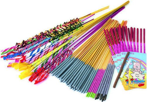 細長い形状で、縦に吹き出すように火花が出るタイプの花火。